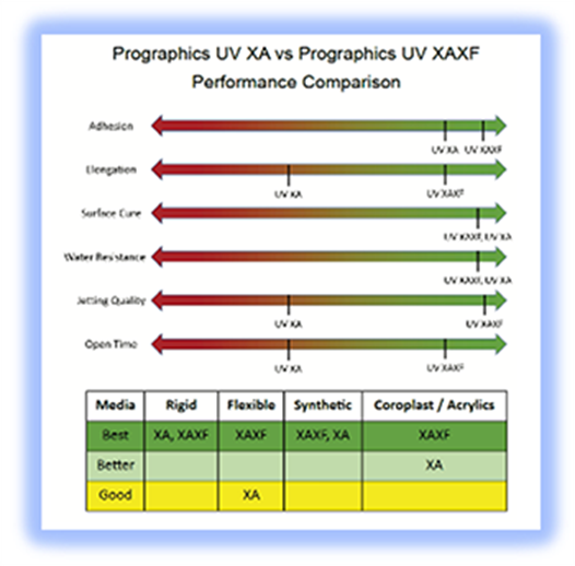 The EFI ProGraphics LED XA XF inks are the default ink set when ordering a new Pro 30h printer, and the ProGraphics LED XA inks are available as an option.